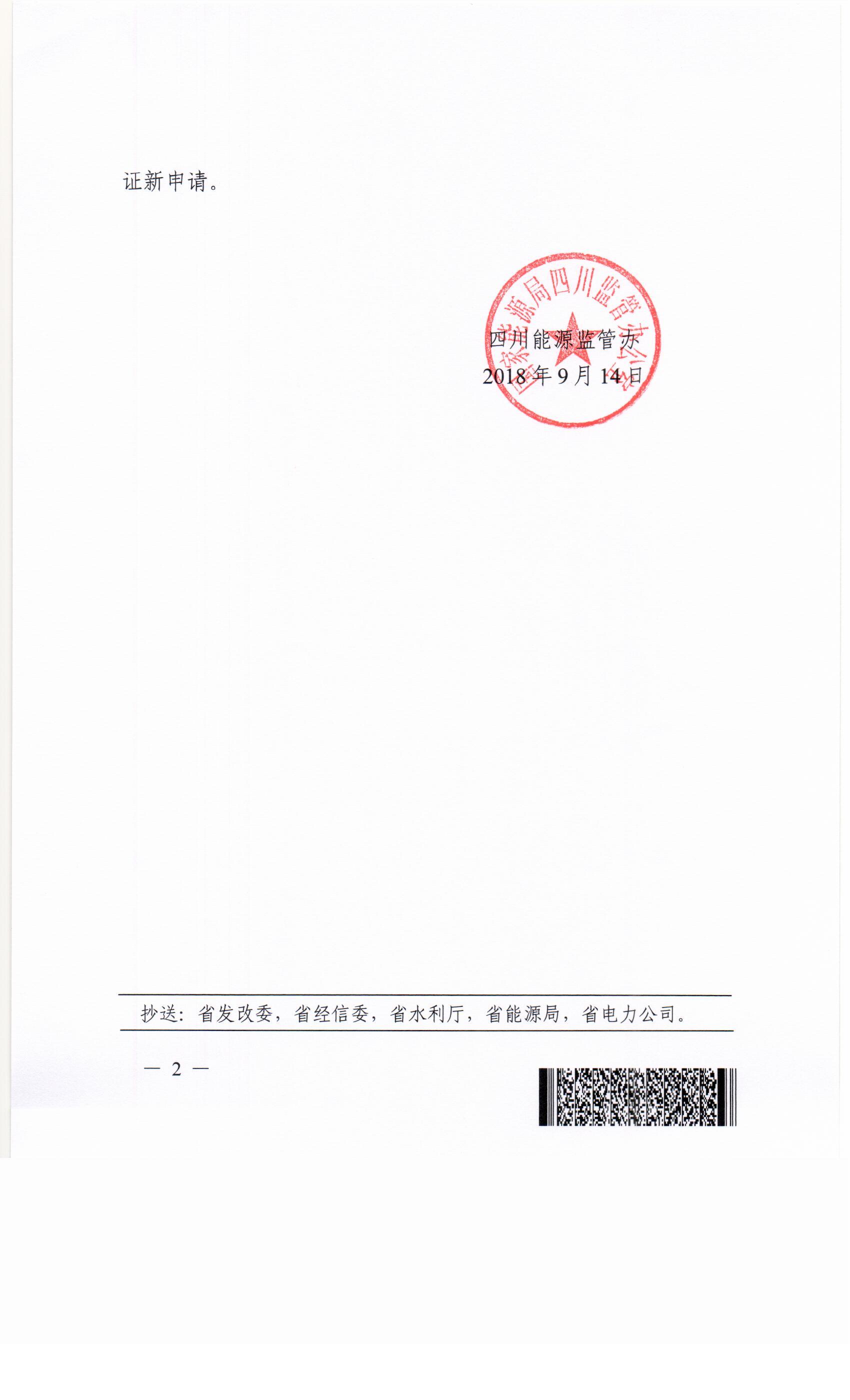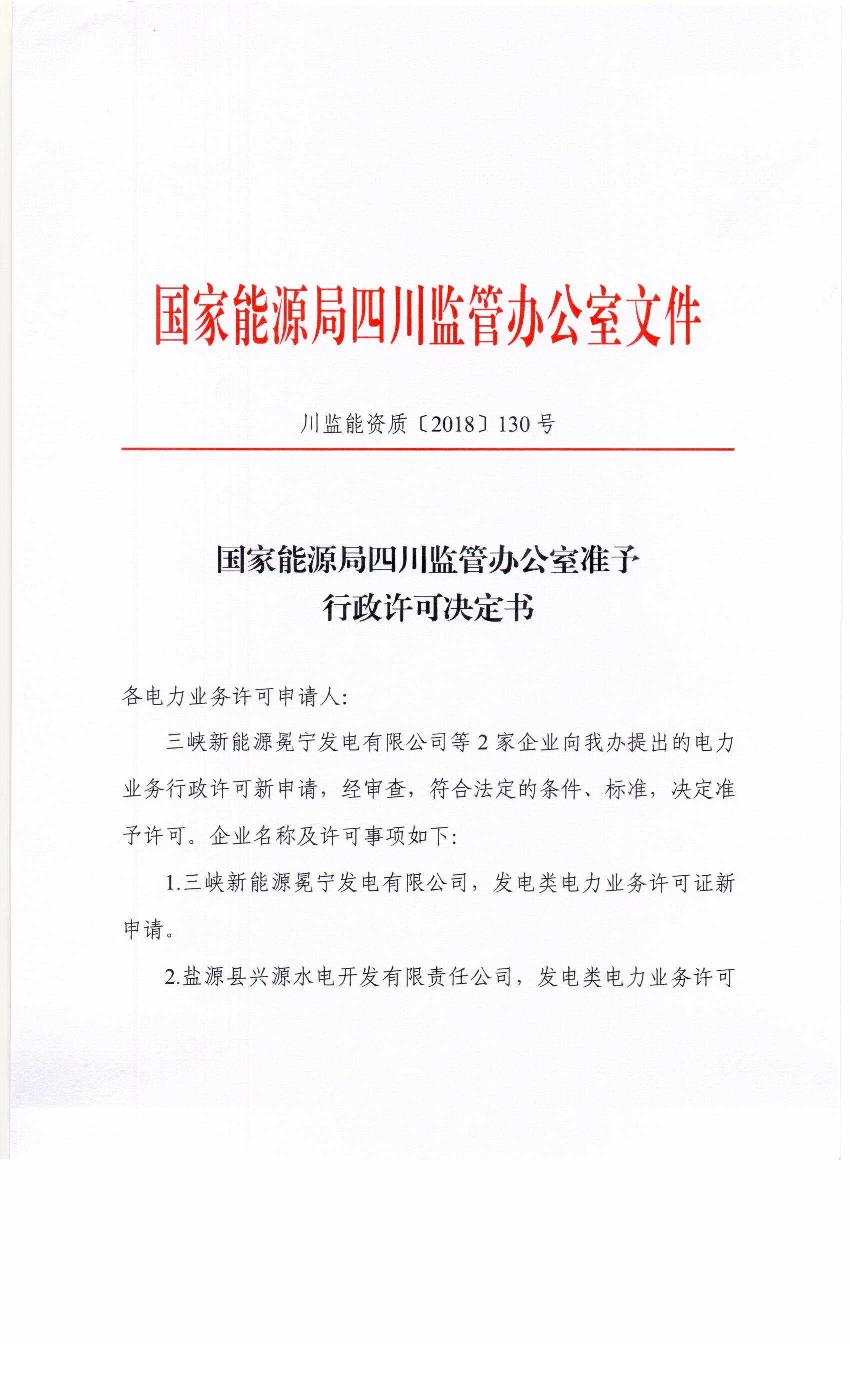 国家能源局四川监管办公室准予行政许可决定书(三峡新能源冕宁发电有限公司等2家)